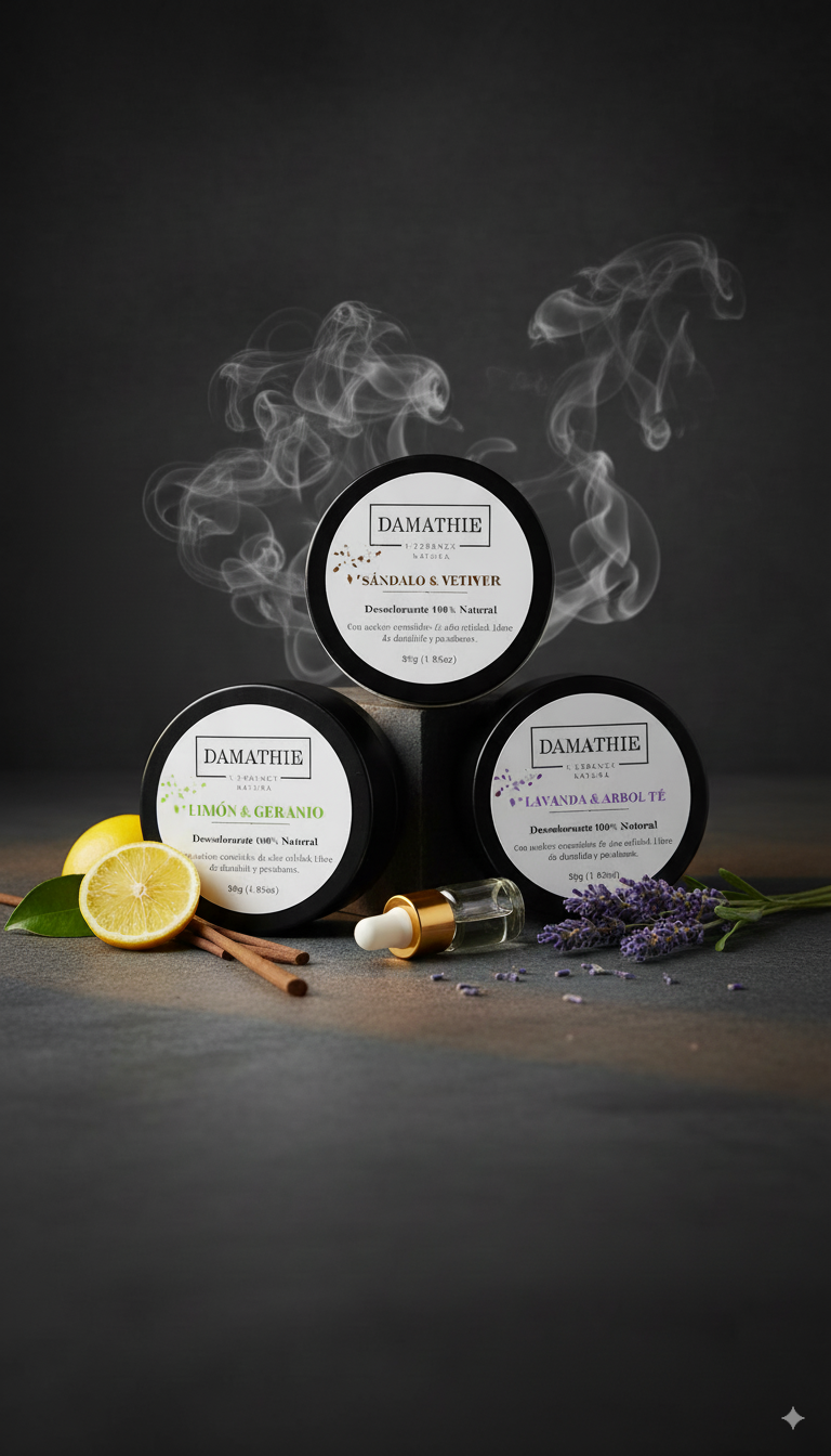 Sí, Damathie es ideal para pieles sensibles. A diferencia de muchos desodorantes naturales que incluyen bicarbonato de sodio (un ingrediente que puede causar irritación o enrojecimiento), nuestras fórmulas están libres de aluminio, parabenos, bicarbonato y fragancias sintéticas.