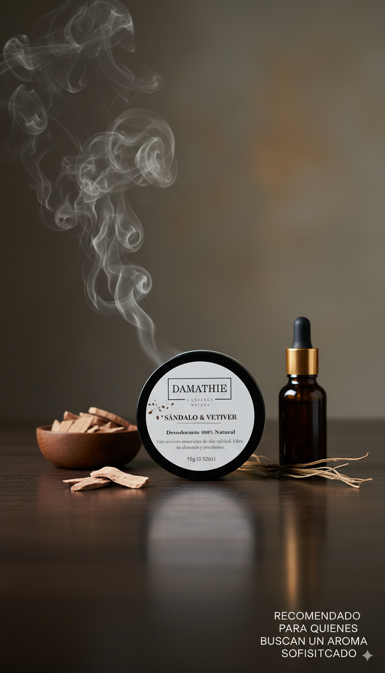 La calidez amaderada del sándalo junto a las notas terrosas del vetiver ofrecen una fragancia elegante y distintiva, recomendada para quienes buscan un aroma sofisticado y natural. Aroma Amaderado Terroso.